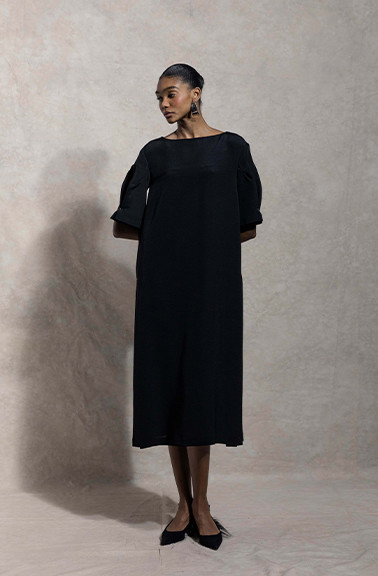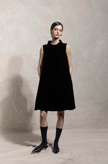 Hem lined with peony pink silk, creating a playful contrast with black velvet.
