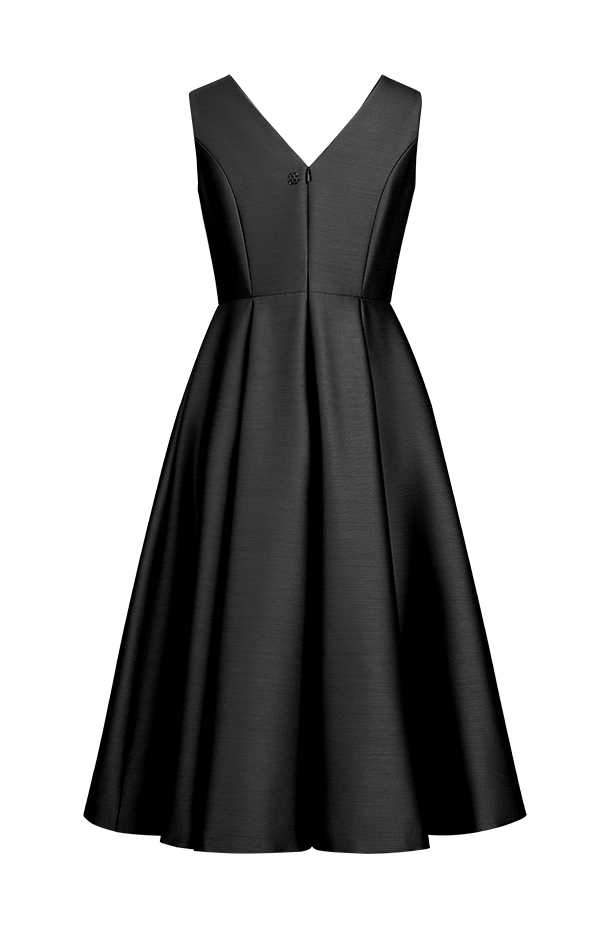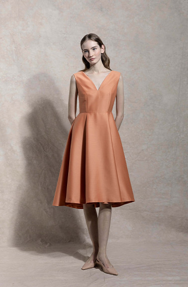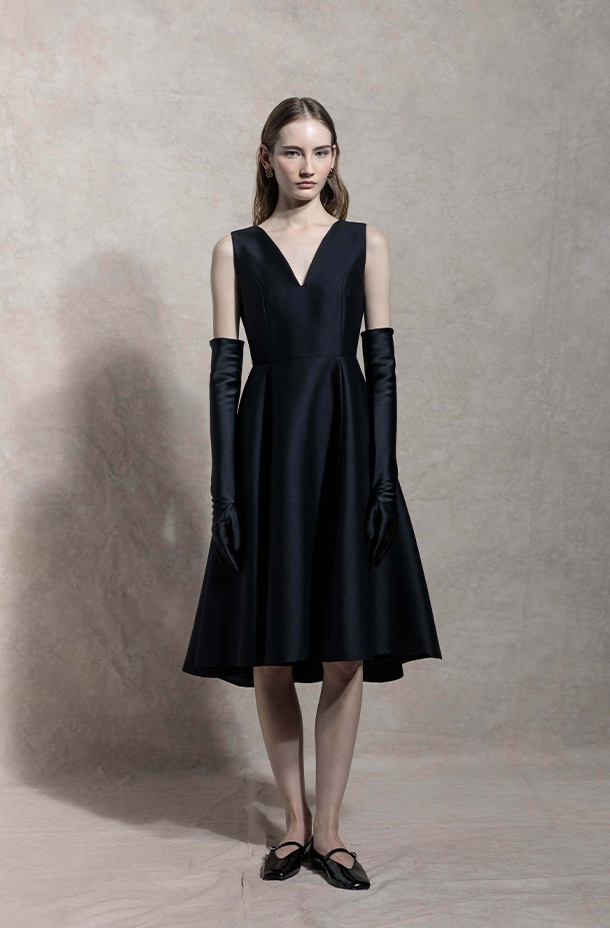 Deep V heart-shaped neckline and skirt showcase exquisite Italian curve tailoring craftsmanship.