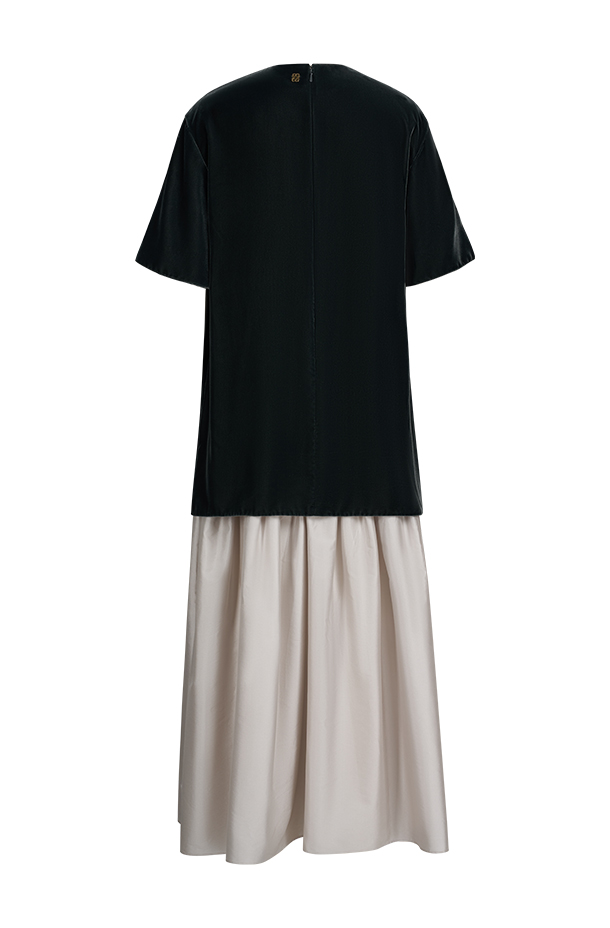 Dark gray and light gray color block, premium velvet blended with lightweight sateen cotton, distinct layers, unique mix-and-match style.