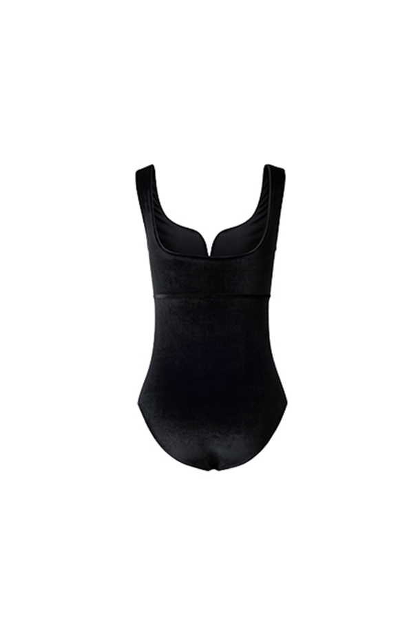 Velvet Fog Jumpsuit• Sweetheart neckline inspired by CURIEL's TUBINO silhouette• Stretch velvet fabric for dancer's comfort and mobility• Upgraded crotch snap for easy wear• Versatile wardrobe essential