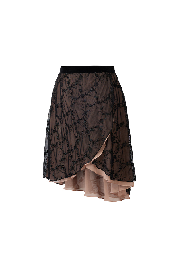 Velvet Fog Embroidered Skirt • CURIEL logo detailing• Black/pink contrast• Stretch velvet comfortCSKCE711BIBK0B5