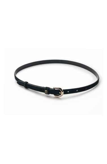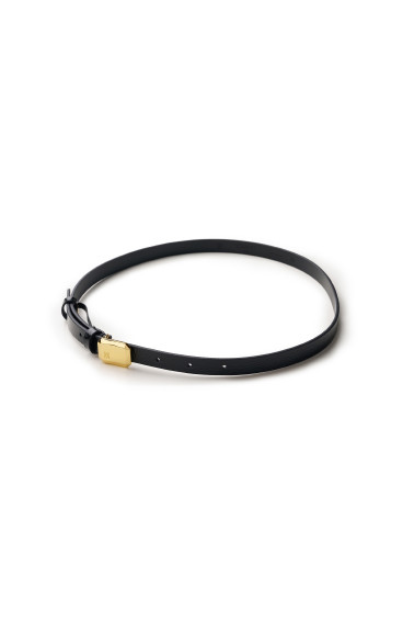 Square gem button black patent calfskin slim belt