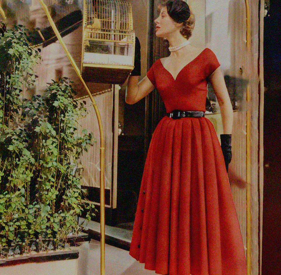 In the aftermath of World War II, Europe emerged from the constrained silhouettes of wartime menswear. Celebrating the end of the war meant celebrating women’s essence as women. Thus, the cinched-waist and flared silhouette came into vogue, becoming the defining style of the 1950s. Building on this iconic shape, Gigliola Curiel, the maison’s second-generation heir, innovated the cloud silhouette—its skirt gently hugging the legs. This creation also became a hallmark of the brand and found a permanent home in Italian museums.