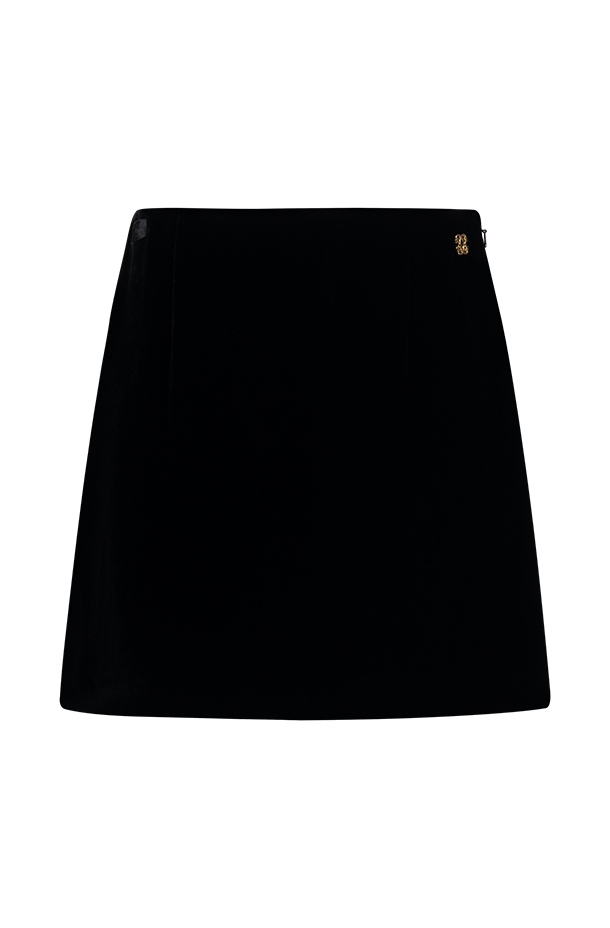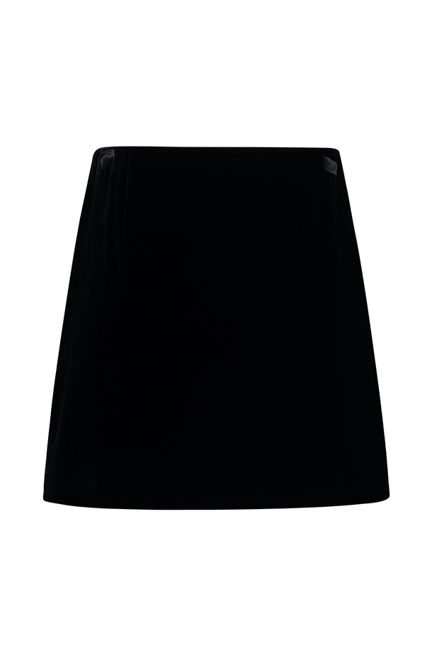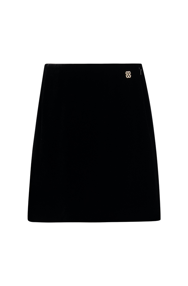 A simple versatile short skirt with comfortable touch.New eco-velvet with CUPR0™ base and viscose pile: elegant luster, soft fine texture.Can be worn with matching fabric shirt.100VI 100CU