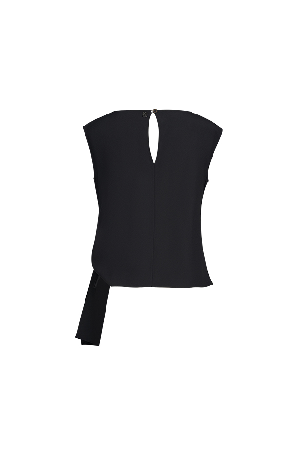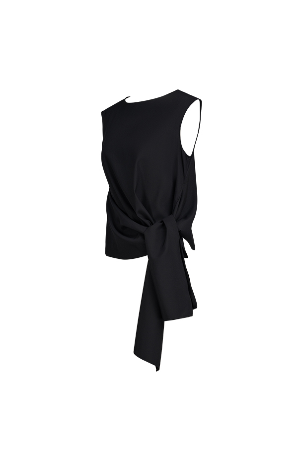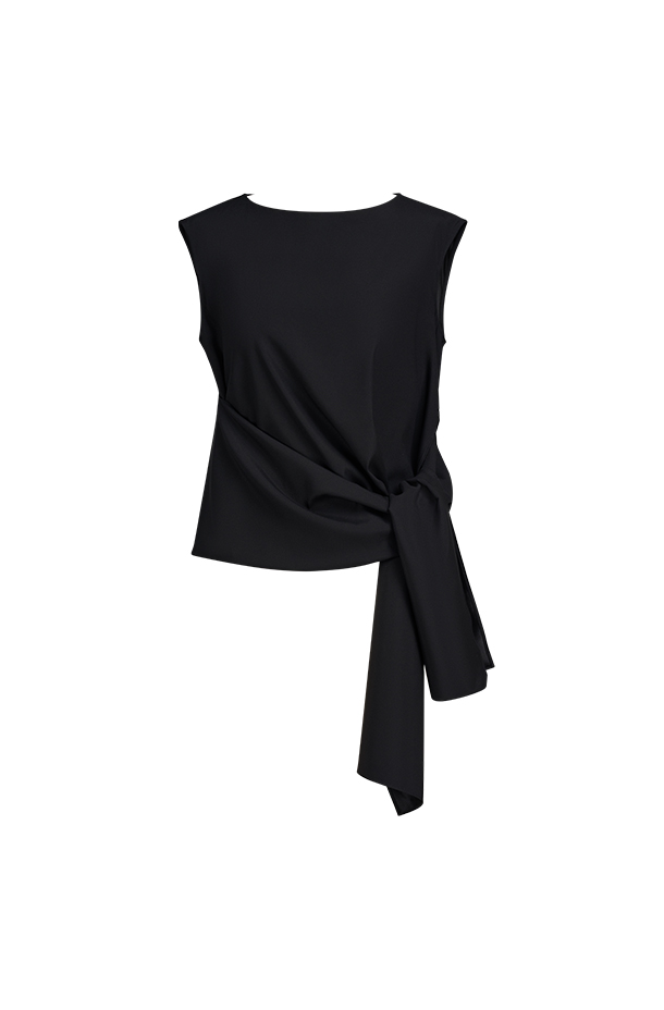 Boat neckline modifies shoulder-neck proportion, outlines sharp charm.Adjustable side ties emphasize the waist for styled shaping.Sleeveless design ideal for spring/summer layering or solo wear—office or daily.92SE 8EA