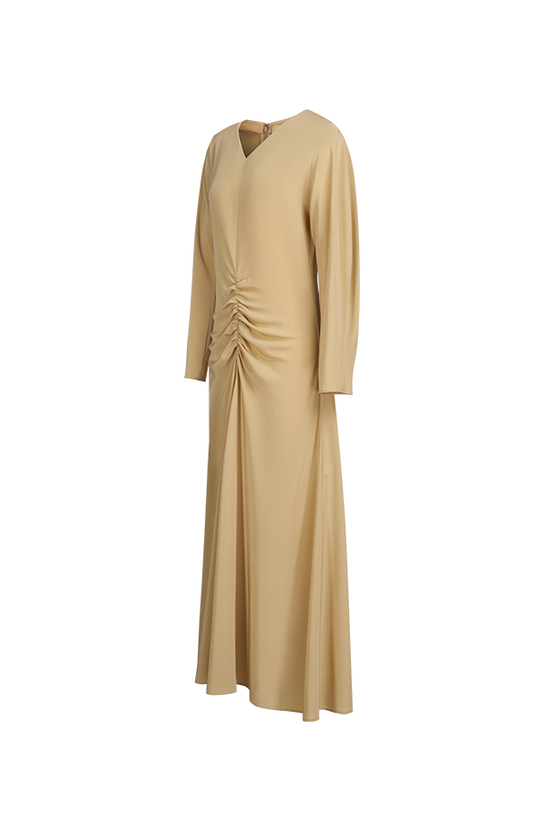 Dolman long sleeves drape naturally, simple yet impactful, with attached inner slip in matching color.