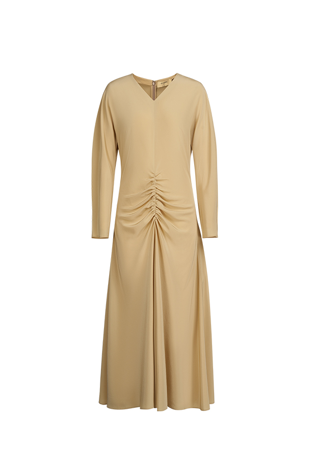 Cocoon-shaped bodice cutting with soft fluid lines, combining comfort and style.