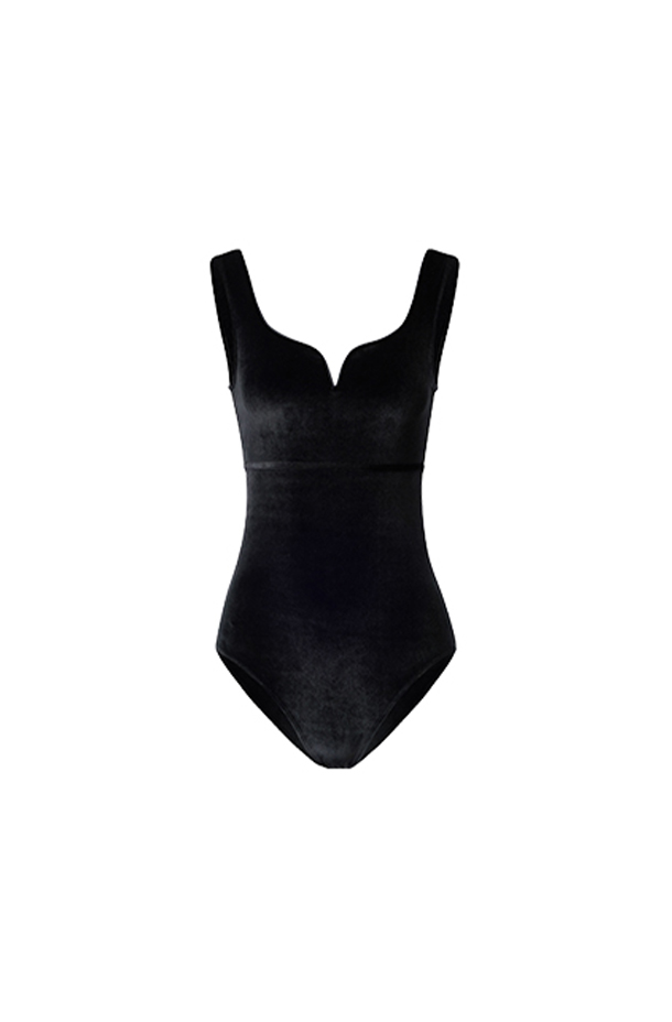 Velvet Fog Jumpsuit• Sweetheart neckline inspired by CURIEL's TUBINO silhouette• Stretch velvet fabric for dancer's comfort and mobility• Upgraded crotch snap for easy wear• Versatile wardrobe essential