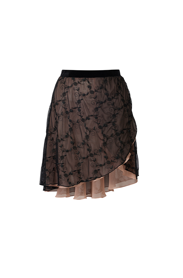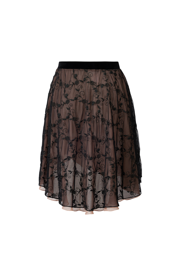 Velvet Fog Embroidered Skirt • CURIEL logo detailing• Black/pink contrast• Stretch velvet comfortCSKCE711BIBK0B5